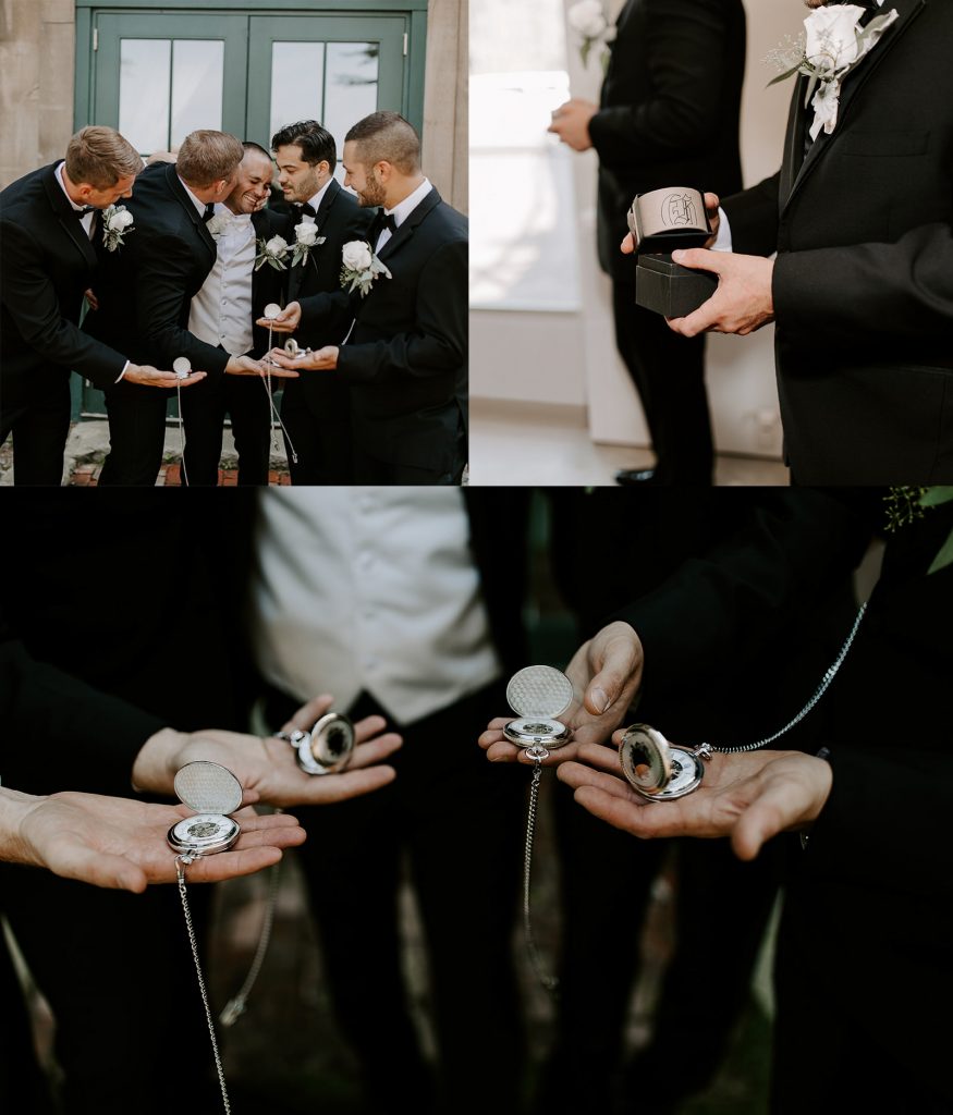 One of the most meaningful parts of the day was a quiet moment with Kyle and his groomsmen. Kyle gifted each of his groomsmen a pocket watch, something that held special significance to him. It was such a timeless and intentional gift, and you could feel how much it meant, not just as a keepsake, but as a symbol of the friendships standing beside him that day.